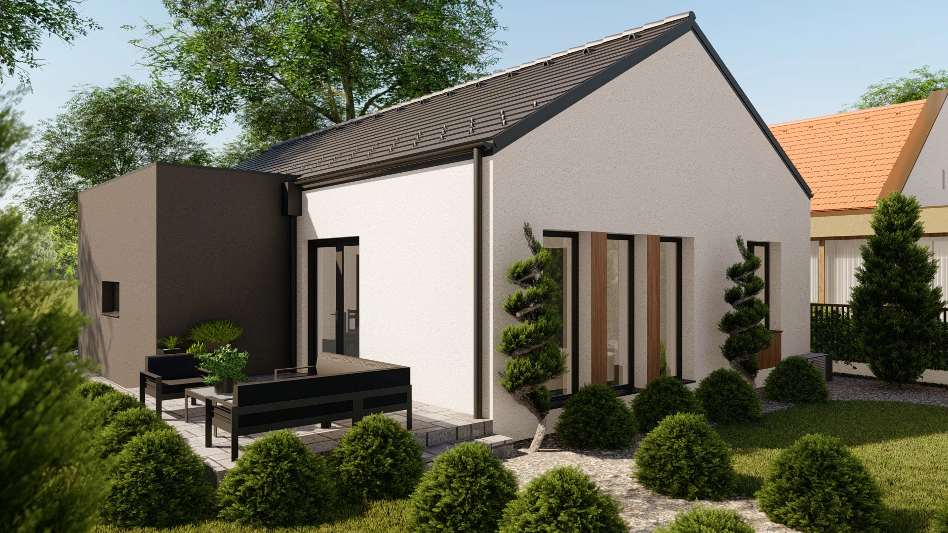 A faszerkezetes Standard 103 elnevezésű típusházat főként nagycsaládoknak álmodtuk meg. Jelentős alapterület, 3 szoba, kiváló ár- értékarány, maximálisan kihasznált terek jellemzik. A tágas amerikai konyhás nappaliban mindenki megtalálja a módját a pihenésnek, de akár kiváló helyszín is lehet a baráti/családi összejövetelekhez.
